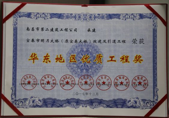 新年伊始,公司項目就迎來了開門紅。公司承建的宜春市明月大橋改建及引道工程榮獲華東地區(qū)優(yōu)質(zhì)工程獎。