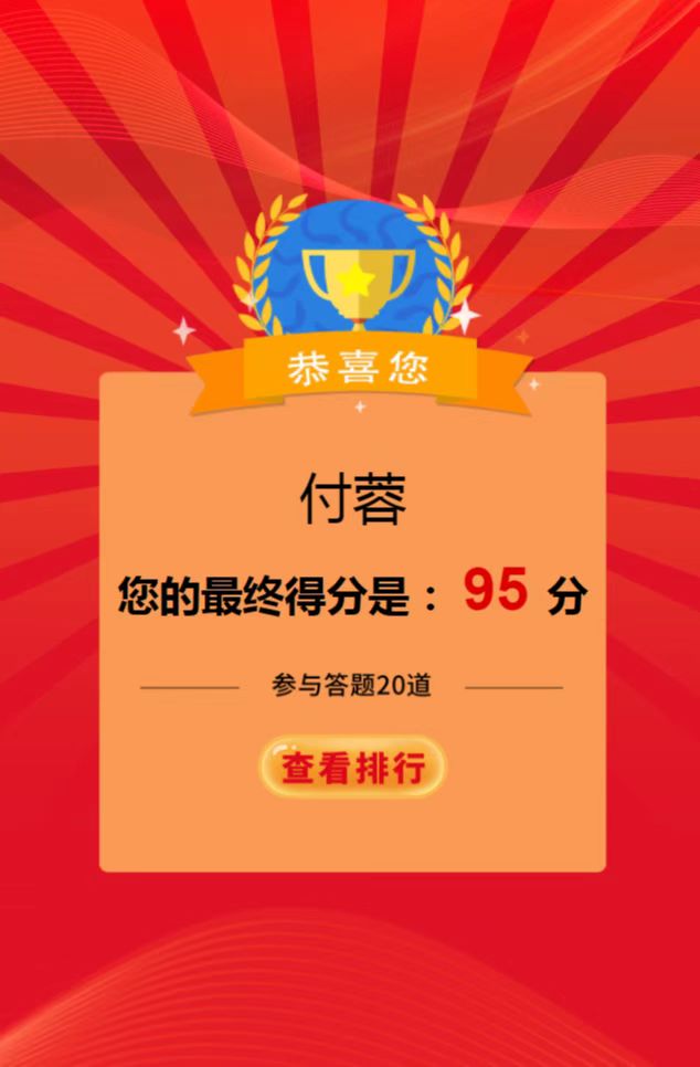 該競賽是以“傳承紅色基因 守牢紀(jì)法底線”為主題,通過線上學(xué)習(xí),線上答題的形式,以考促學(xué),以考驗效,營造了學(xué)習(xí)“四史”的濃厚氛圍,重點教育黨員干部深刻認(rèn)識“兩個確立”的決定性意義,增強“四個意識”、堅定“四個自信”、做到“兩個維護”。同時,把答題活動作為加強黨員干部紀(jì)法教育的重要載體進行落實,激發(fā)黨員干部學(xué)習(xí)紀(jì)法知識的積極性、主動性,牢固樹立紀(jì)法意識,自覺嚴(yán)守紀(jì)律規(guī)矩、不逾紀(jì)法底線,廉潔從政從業(yè)、規(guī)范行權(quán)用權(quán)。